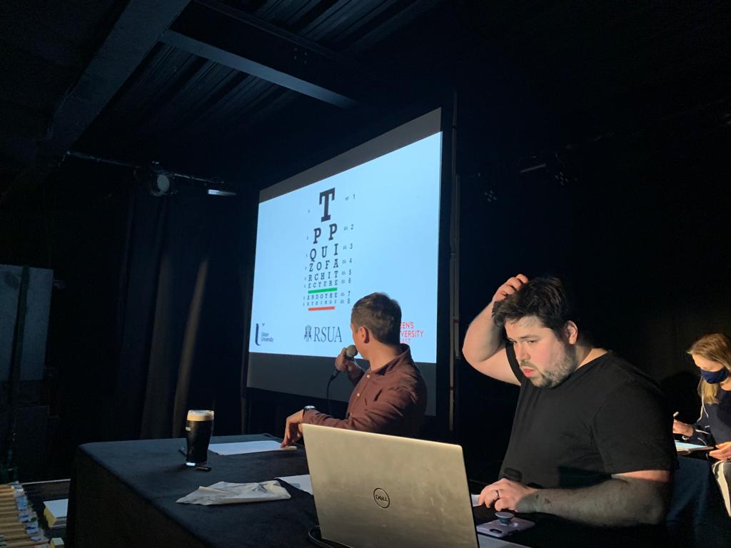 Nine teams braved a total of ten rounds which included a focus on architects in film and music, olympic logos, general knowledge, and of course, architecture. The questions were formulated by University of Ulster’s Rory Caithness, who played quizmaster on the night and Dr Martina Murphy, who performed the most important role of scoremaster! RSUA Event Officer Greg Fox was also on duty to ensure the proceedings went smoothly.