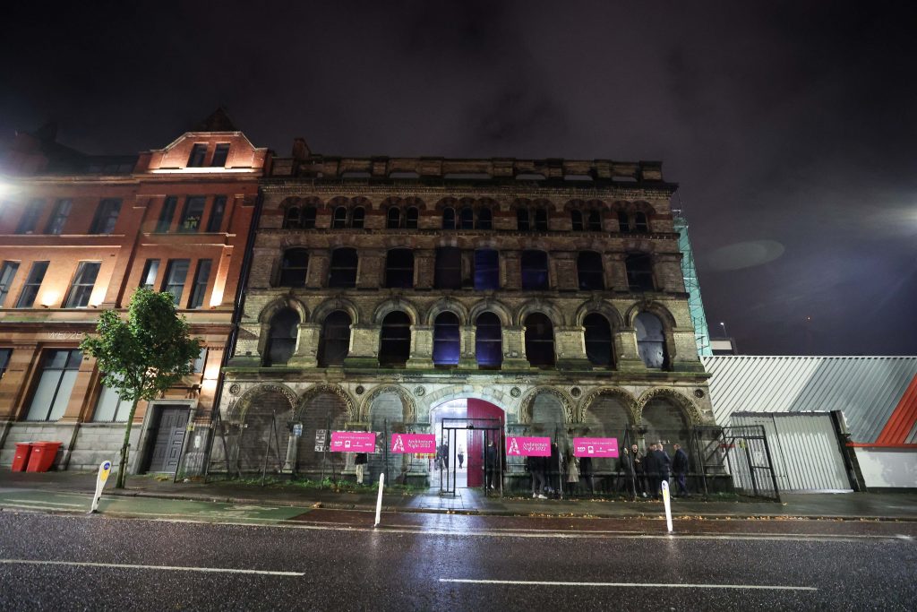 Northern Ireland’s night for celebrating Architecture lights up decommissioned ironmongery in Belfast City Centre.