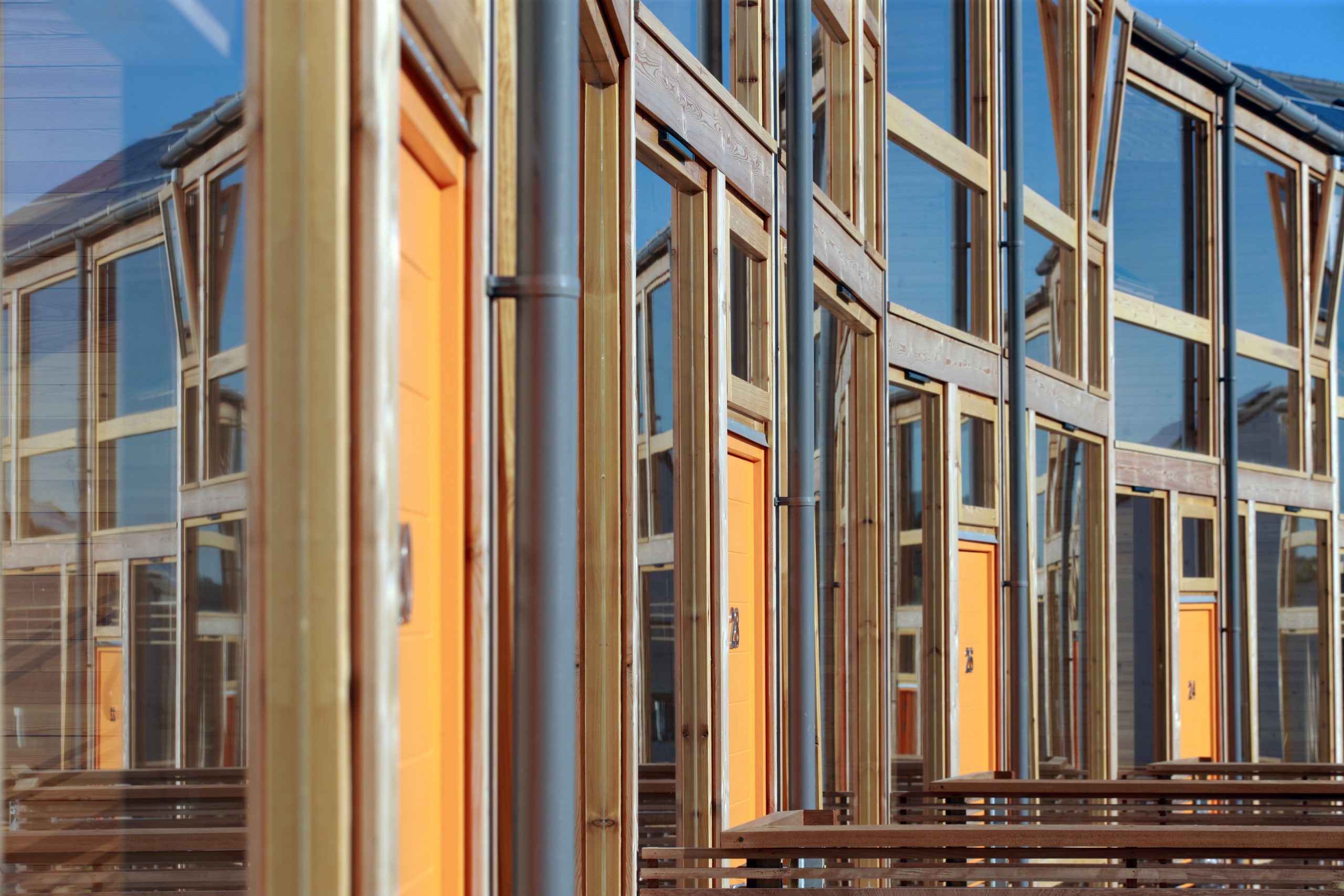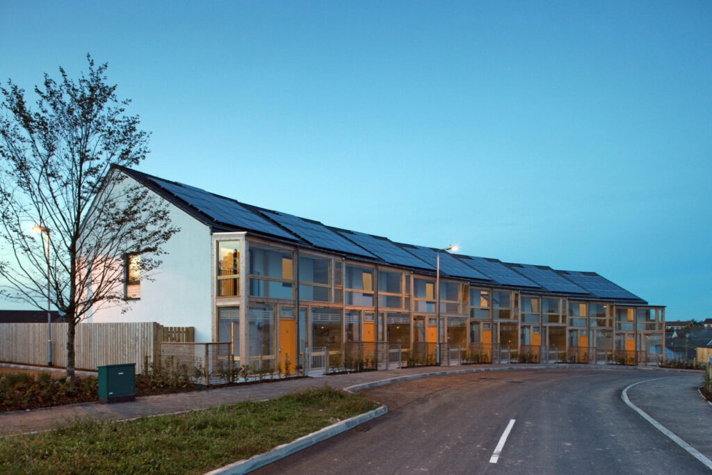 This successful competition winning development is an exemplar project which demonstrates a unique approach to comply with an ambitious sustainability brief. A series of social housing clusters are carefully positioned in a landscape of private, semi-private and public open spaces. Enclosed south facing winter gardens define the architecture of the housing clusters.