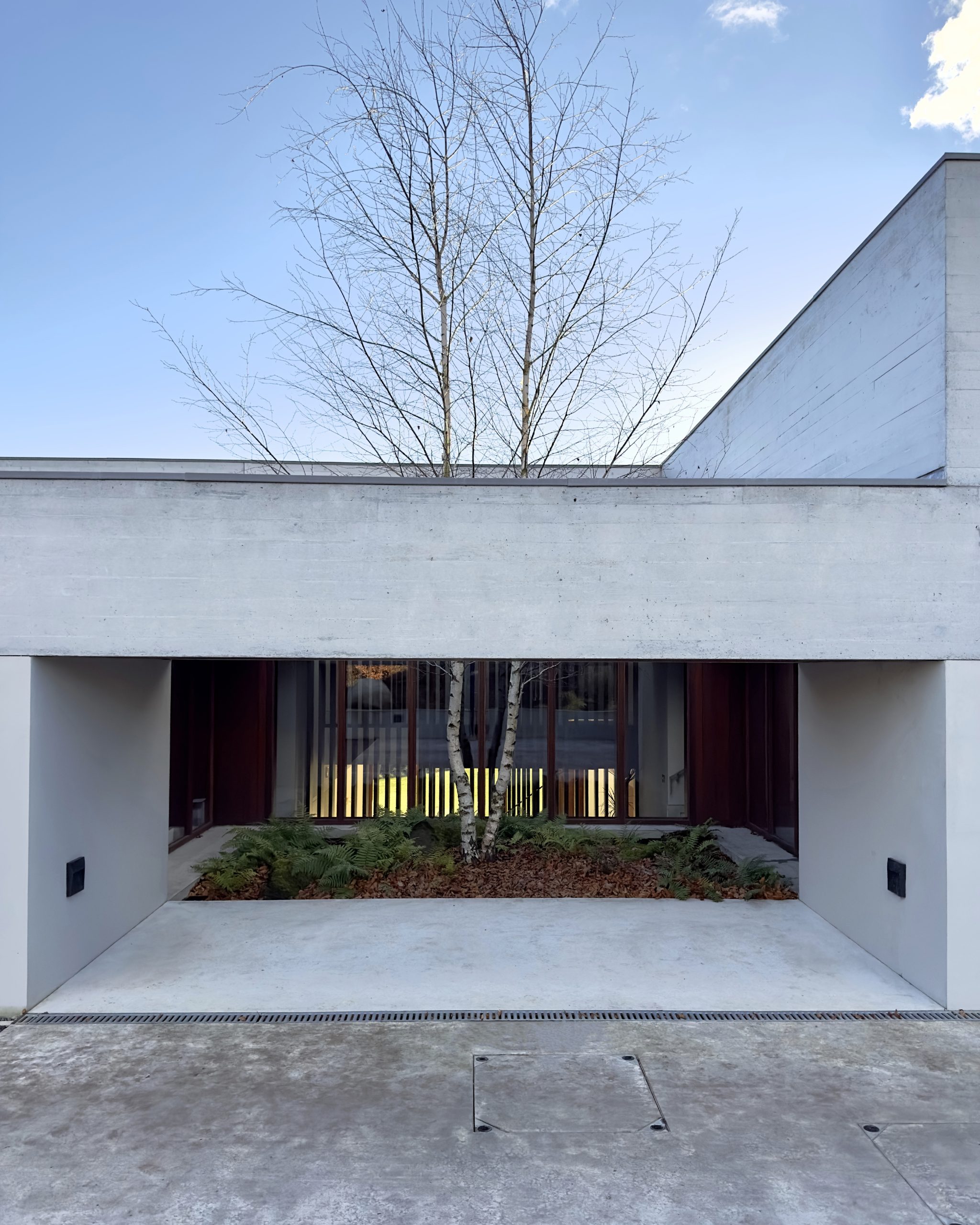 The villa secretes itself within what was once the Longhurst Estate – a mature parkland landscape that was parcelled up into large plots. While the surrounding, very large, quasi traditional villas stand as far from the service lanes and their neighbours as possible, McGonigle McGrath Architects have located their villa to the north of their site, engaging directly both with the lane and the sloping topography. A radical difference in approach to site is further and emphatically emphasised through a very different approach to architectural expression.