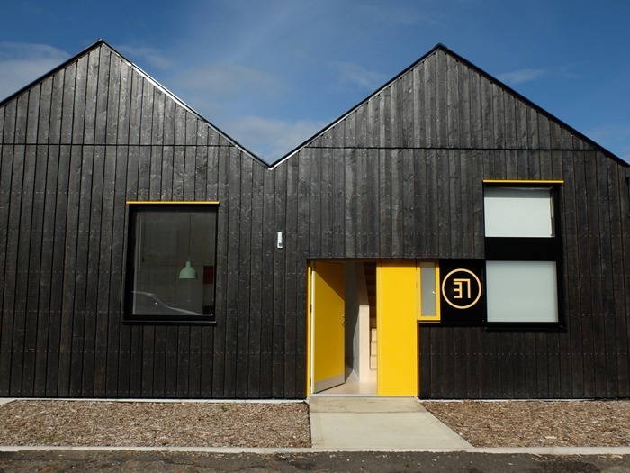 And a local reference too adds to the playfulness of the design with the black cladding contrasted by yellow doors and windows as a nod to Samson and Goliath, which are visible from just outside the front door.