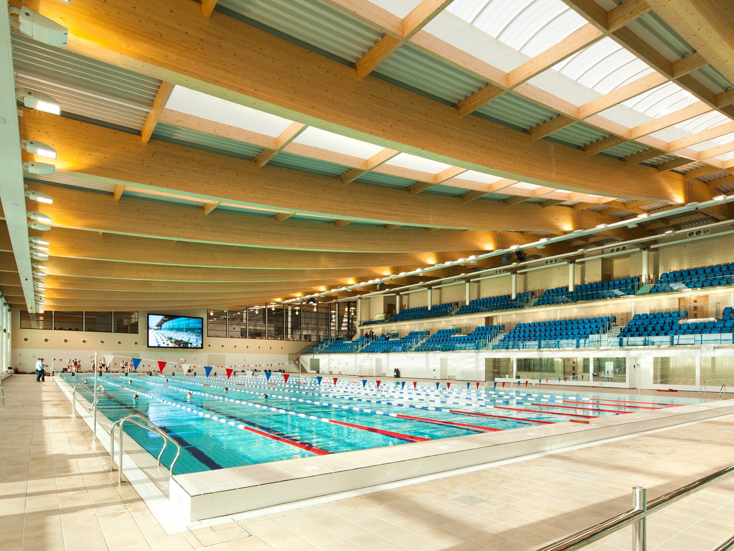 The use of laminated timber beams in a building of this complexity once again clearly demonstrates the versatility of wood as a structural material