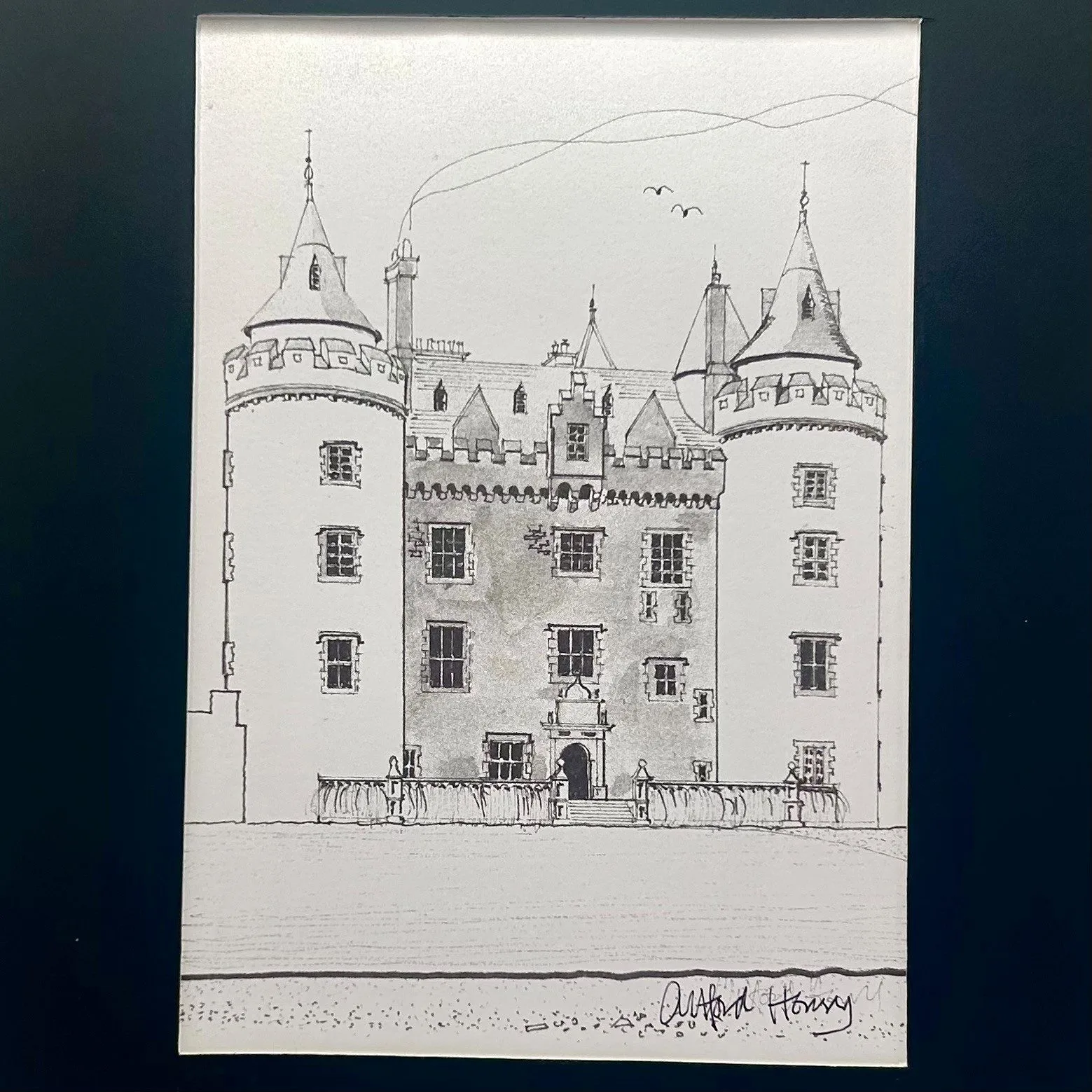 Print of a sketch of Killyleagh Castle by the architect and artist Clifford Henry.