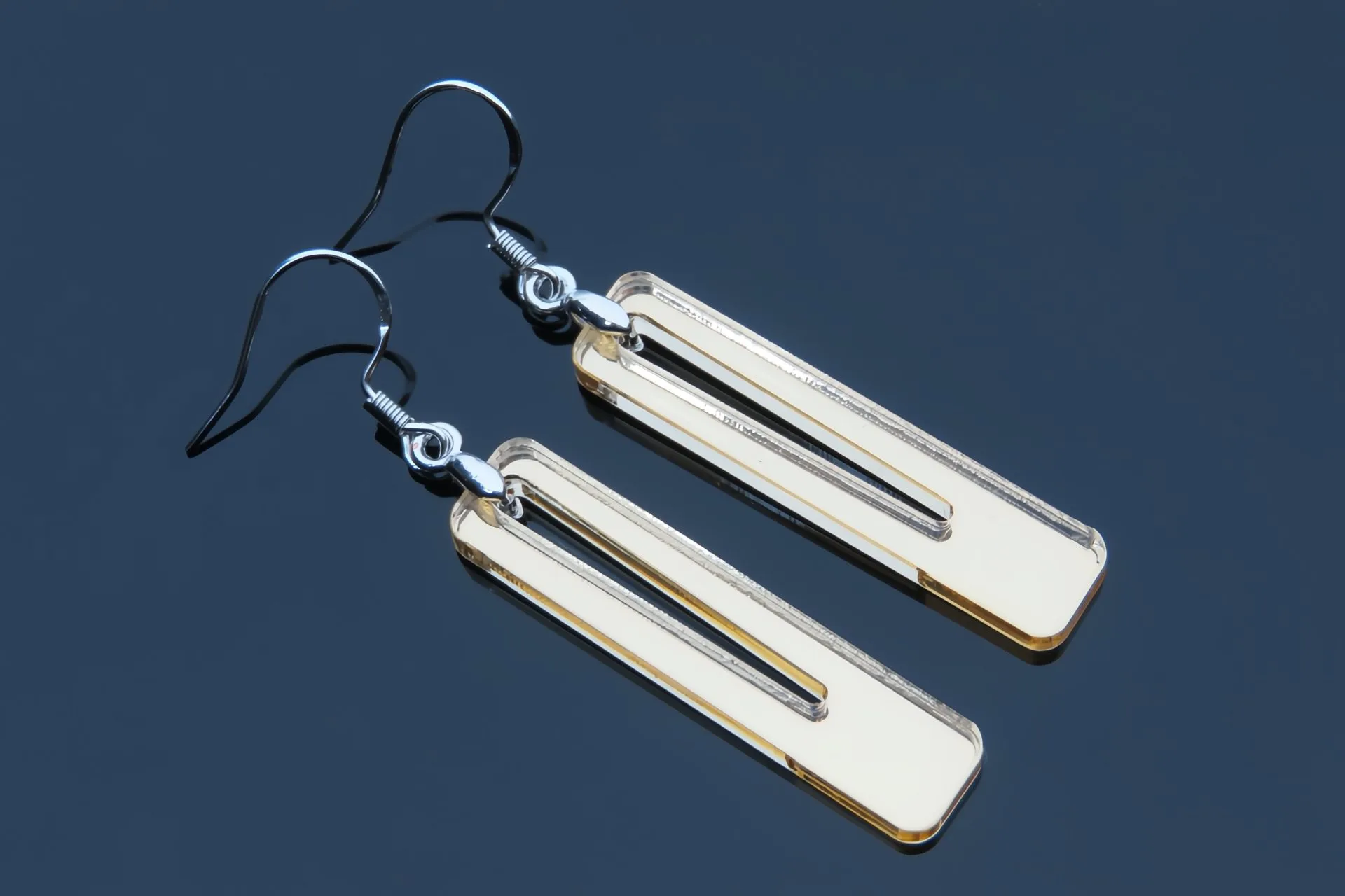 Beautiful rectangular long V slot earrings in gold mirror acrylic with 925 silver hooks.