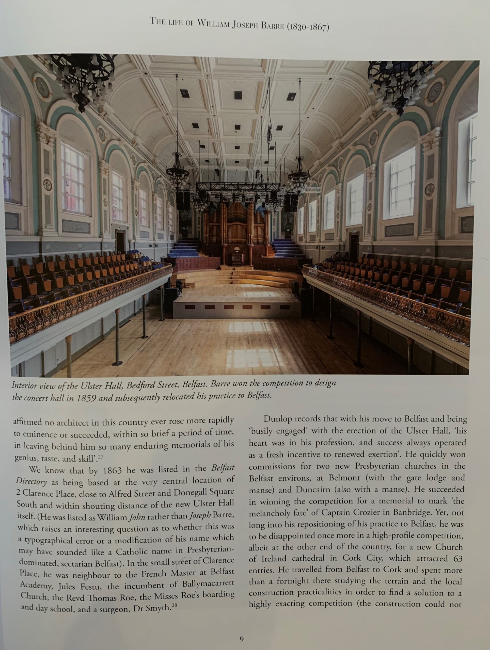 The architect William Joseph Barre (1830-1867), a native of Newry, Co. Down, who moved his practice to a burgeoning Belfast in 1860, was one of Ulster’s very best Victorian designers. His body of work is worthy of capture and is celebrated anew in this comprehensive, beautifully illustrated monograph by Dr Paul Harron.